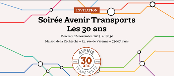 PROGRAMME Soirée d’Avenir Transports – Les 30 ansMercredi 26 novembre 2025, à 18h30 PROGRAMME 18H30 – Propos introductifs: Pascale Gruny, sénateur, et Christophe Plassard, député, co-présidents d’Avenir Transports 18H45/19H45 – Débat animé par Gilles Dansart, directeur de Mobilettre: trois décennies d’évolution des mobilités, et demain? 19H45 – Conclusion, avec le ministre des Transports 20H00 – Cocktail dînatoire. Répondre svp, nombre de places limité. |
